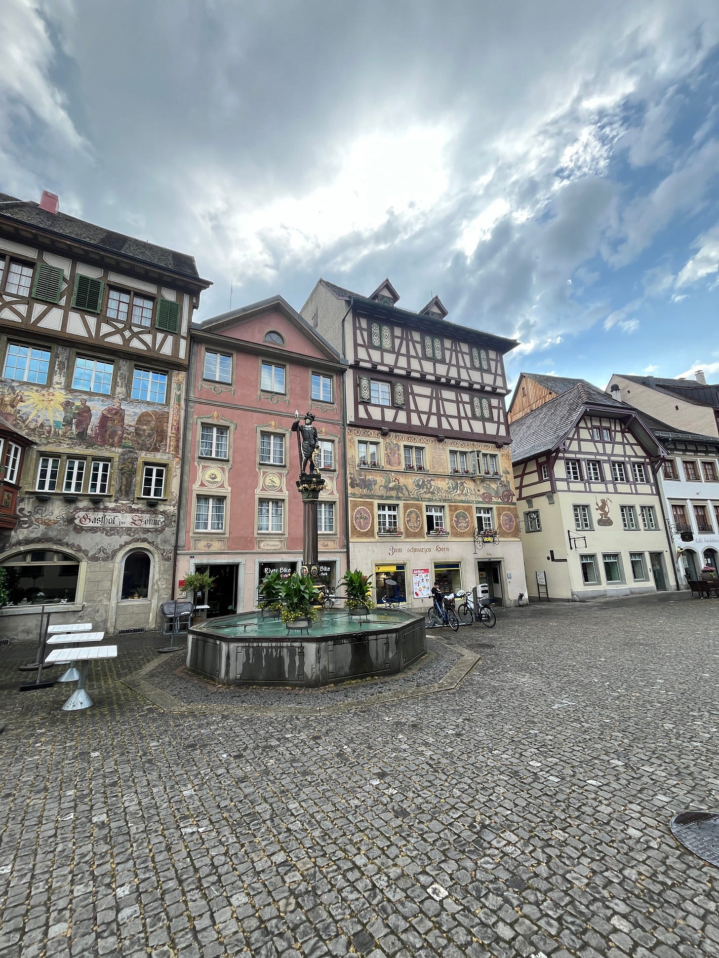 Les nuages dansent toujours au firmament, mais plus accueillants, ils invitent à reprendre la route et battre le pavé dans la jolie bourgade de Stein am Rhein. Après un départ à Schaffhouse, un flirt zurichois, il est venu le temps de quelques tours de roues dans le canton de Thurgovie.