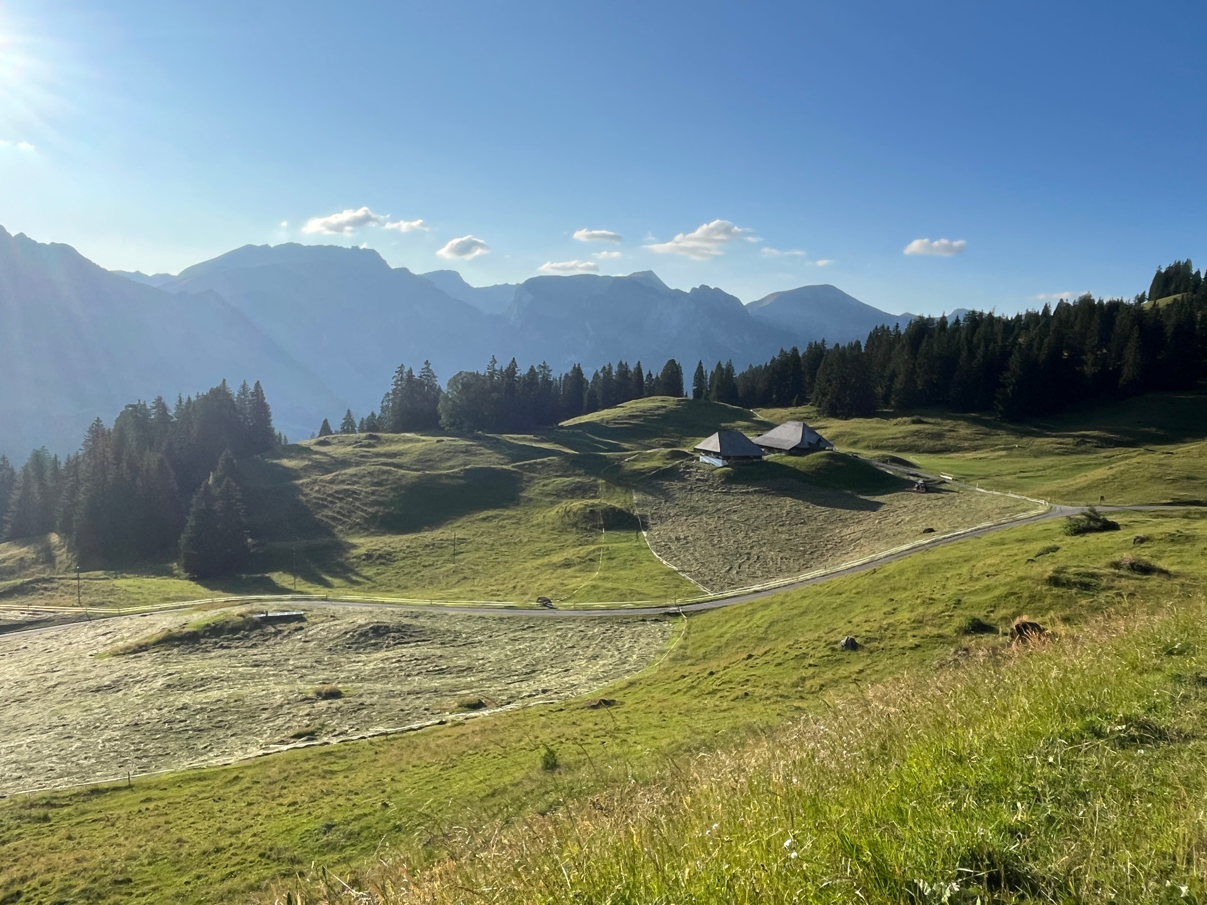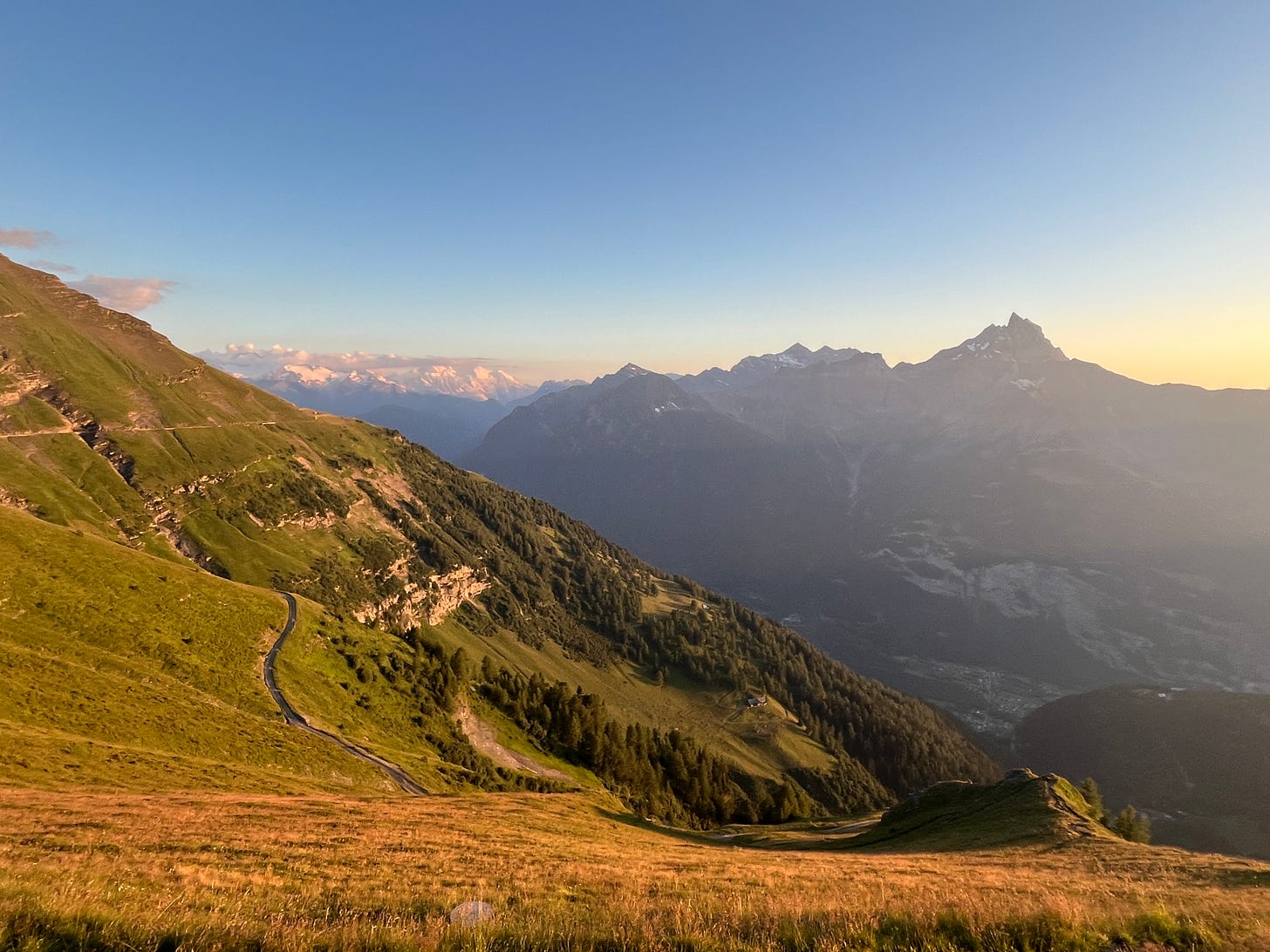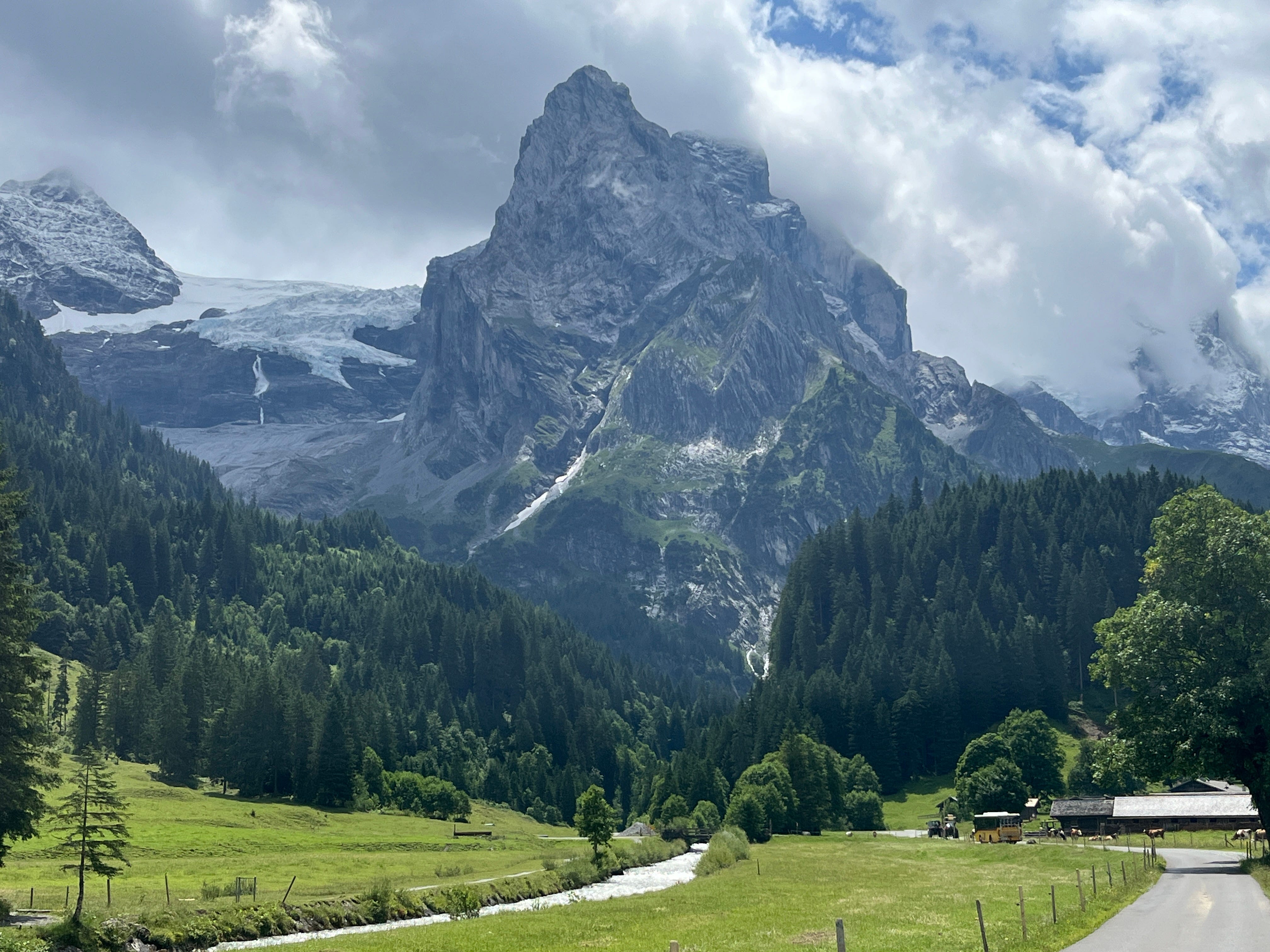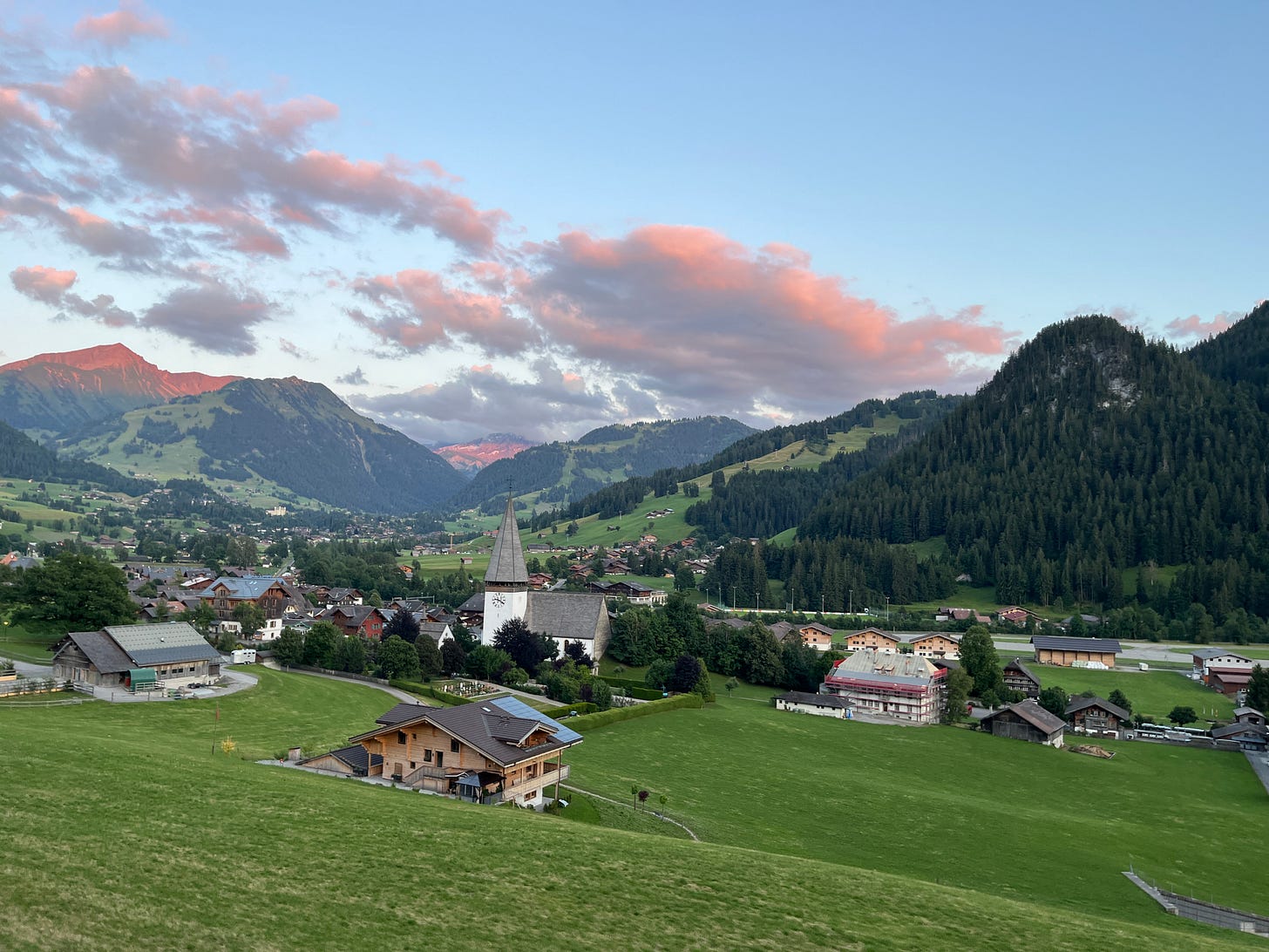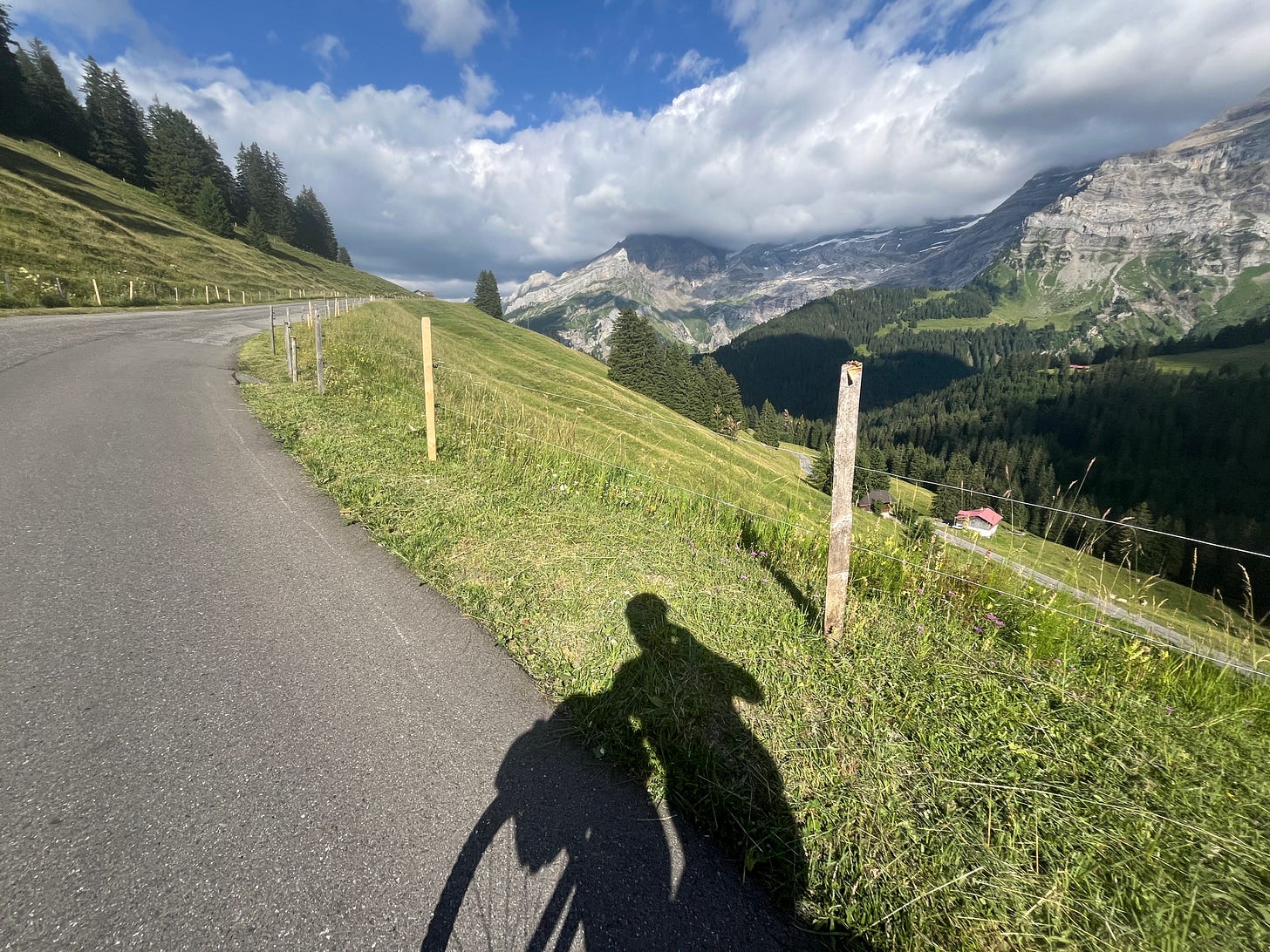 Le Simmental est délaissé pour s’engouffrer dans le Diemtiegtal. Une vallée sans fin où le soleil s’amuse à se cacher dernière les crêtes en cette fin de journée. Le point de bascule est enfin franchi sous de belles lueurs. Le temps passe. Point d’accroche, un verre à Saanen avec Claude, un ami.