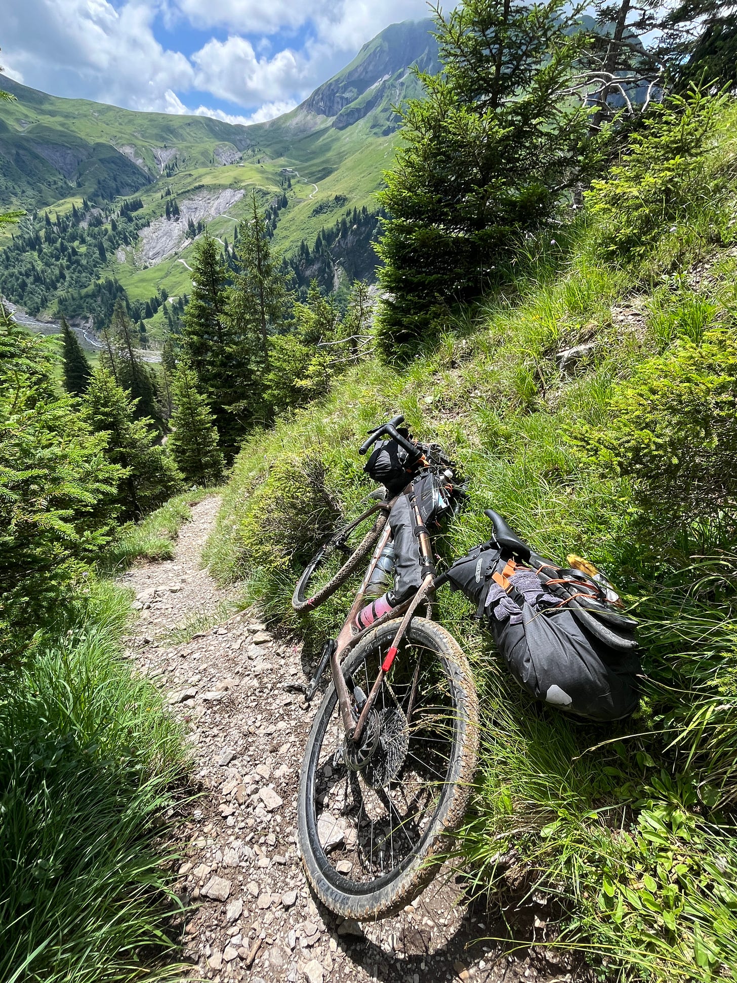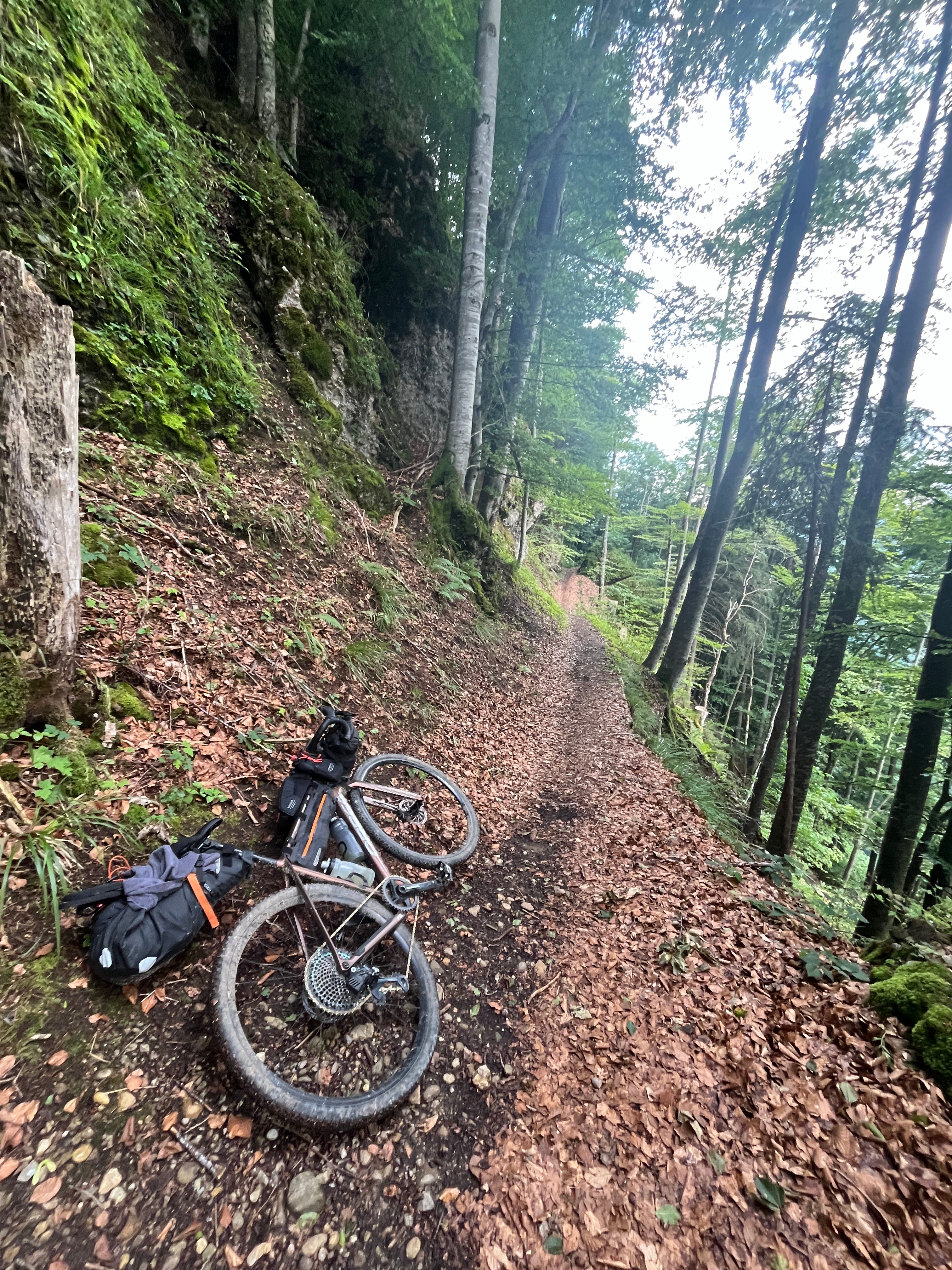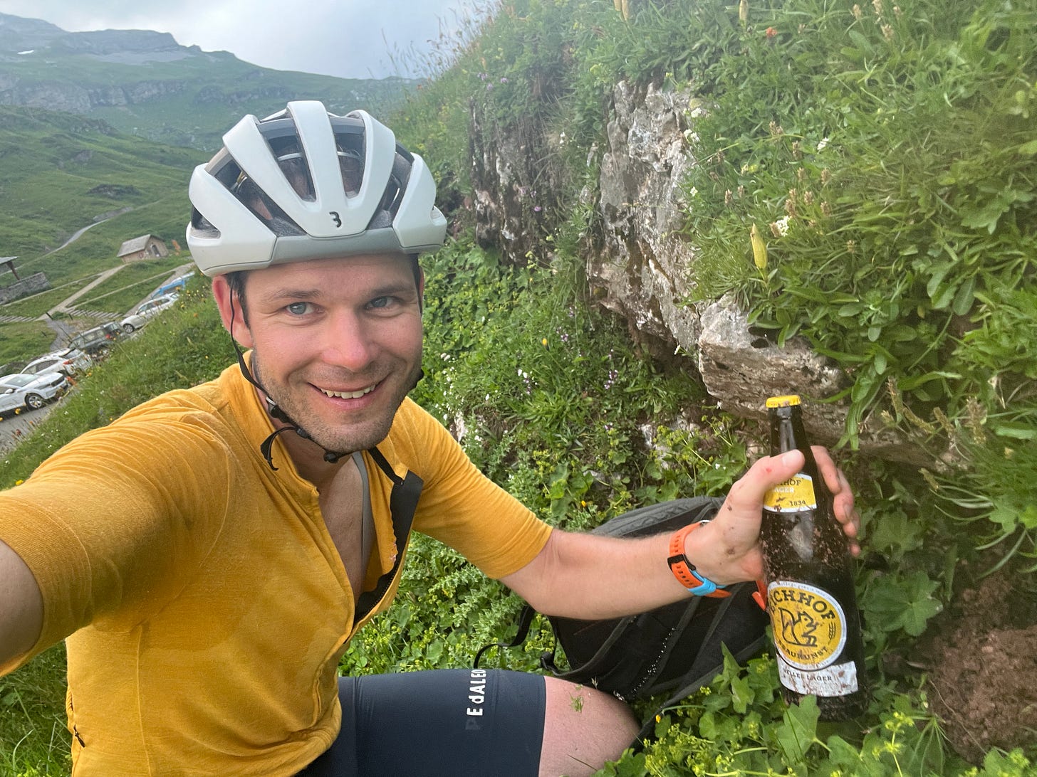 De nouvelles routes extrêmement raides me portent sur les sentiers peu cyclables dominant Muotathal & Stoss. Un Rivella sur la terrasse d’un alpage apporte un peu douceur dans ce bain d’acide.