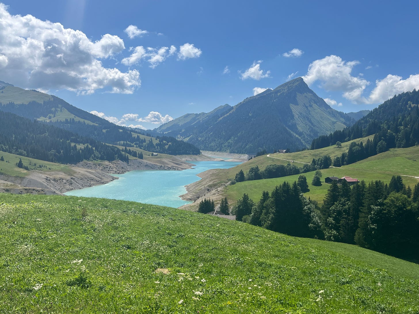 Même si les paysages me sont bien moins inconnus à présent, les coups d’œil valent toujours leur pesant d’efforts. Longeant le lac de l’Hongrin sur quelques hectomètres, la prochaine pause est planifiée au col des Mosses.