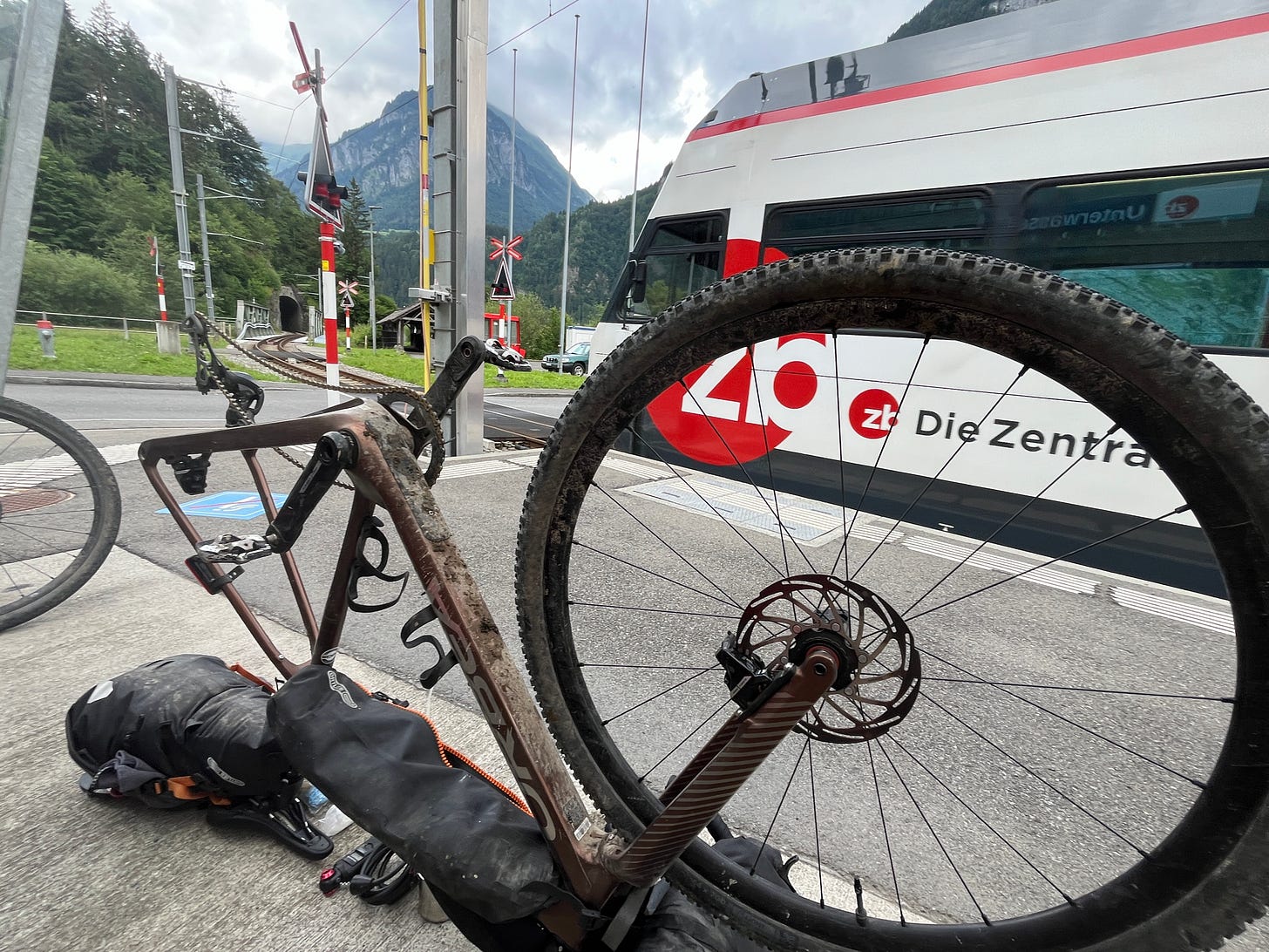 Sous un ciel à nouveau menaçant, j’atteins finalement Innertkirchen après avoir franchi les Gorges de l’Aar en empruntant l’ancienne route du Grimsel. Une vraie épreuve de force face à la pente. Arrivée à destination, j’en profite pour faire un peu de mécanique et déposer ma roue chez le vélociste du coin, n’ayant pas nipple de rechange pour ma roue avant.