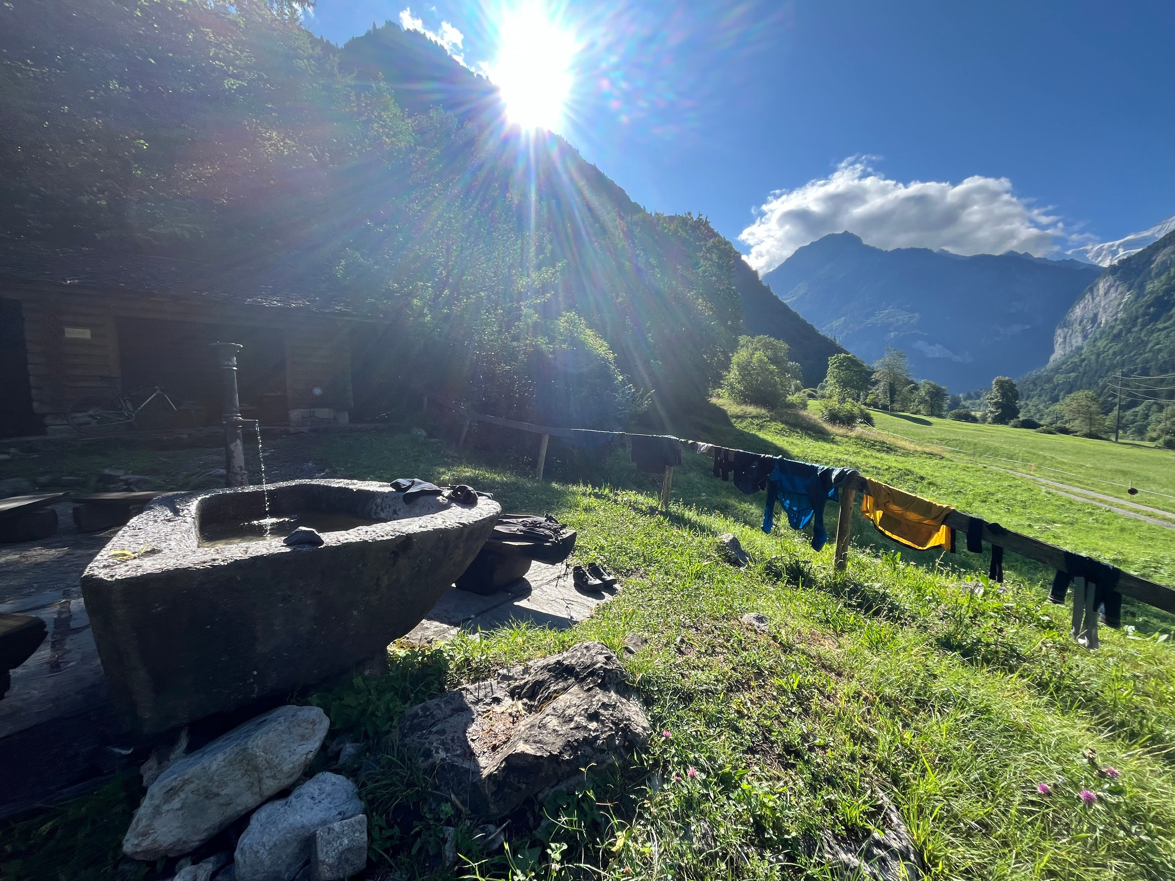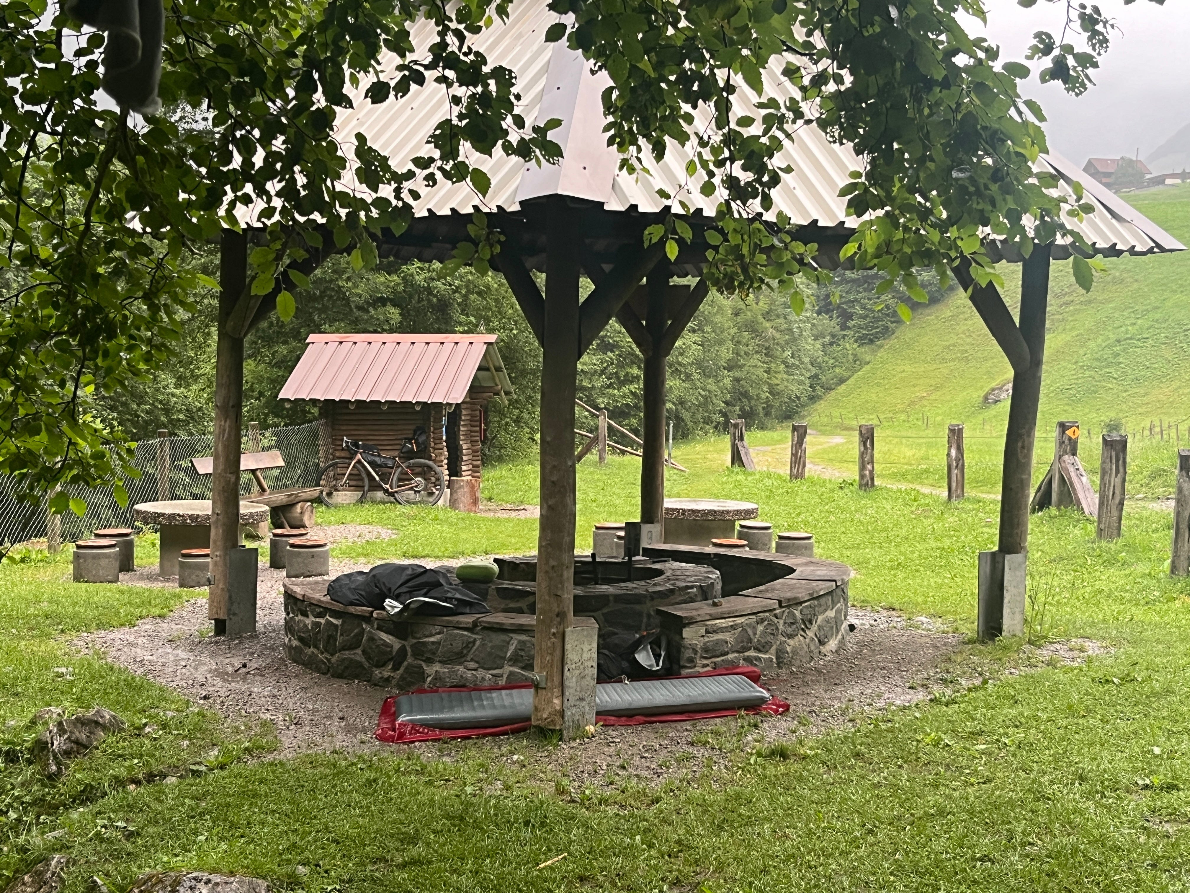 Ma route du jour s’arrête une dizaine de kilomètres plus loin, près de Gsteigwiler, où je jouis d’un d’un abri et d’une solitude bienvenue. Place à la fondue avant une bonne nuit.