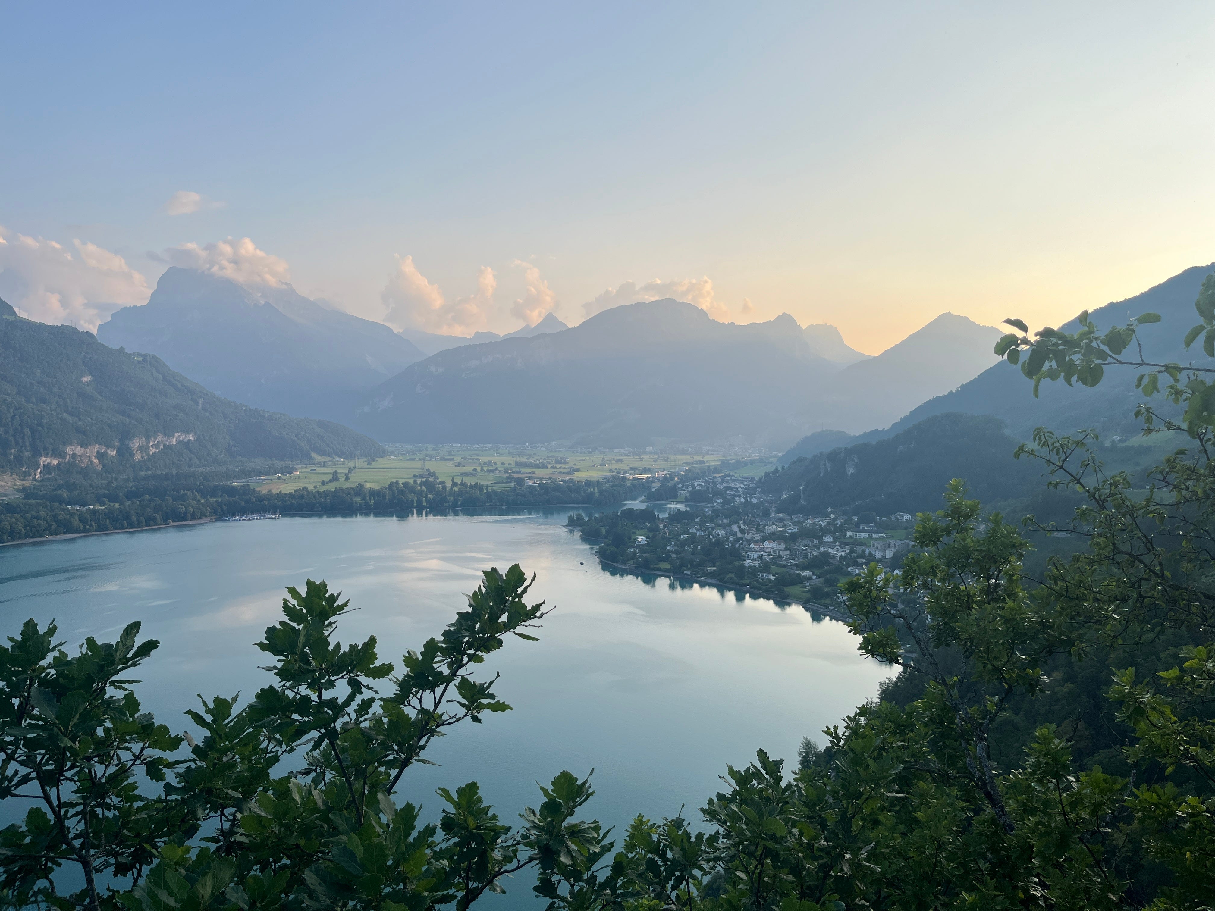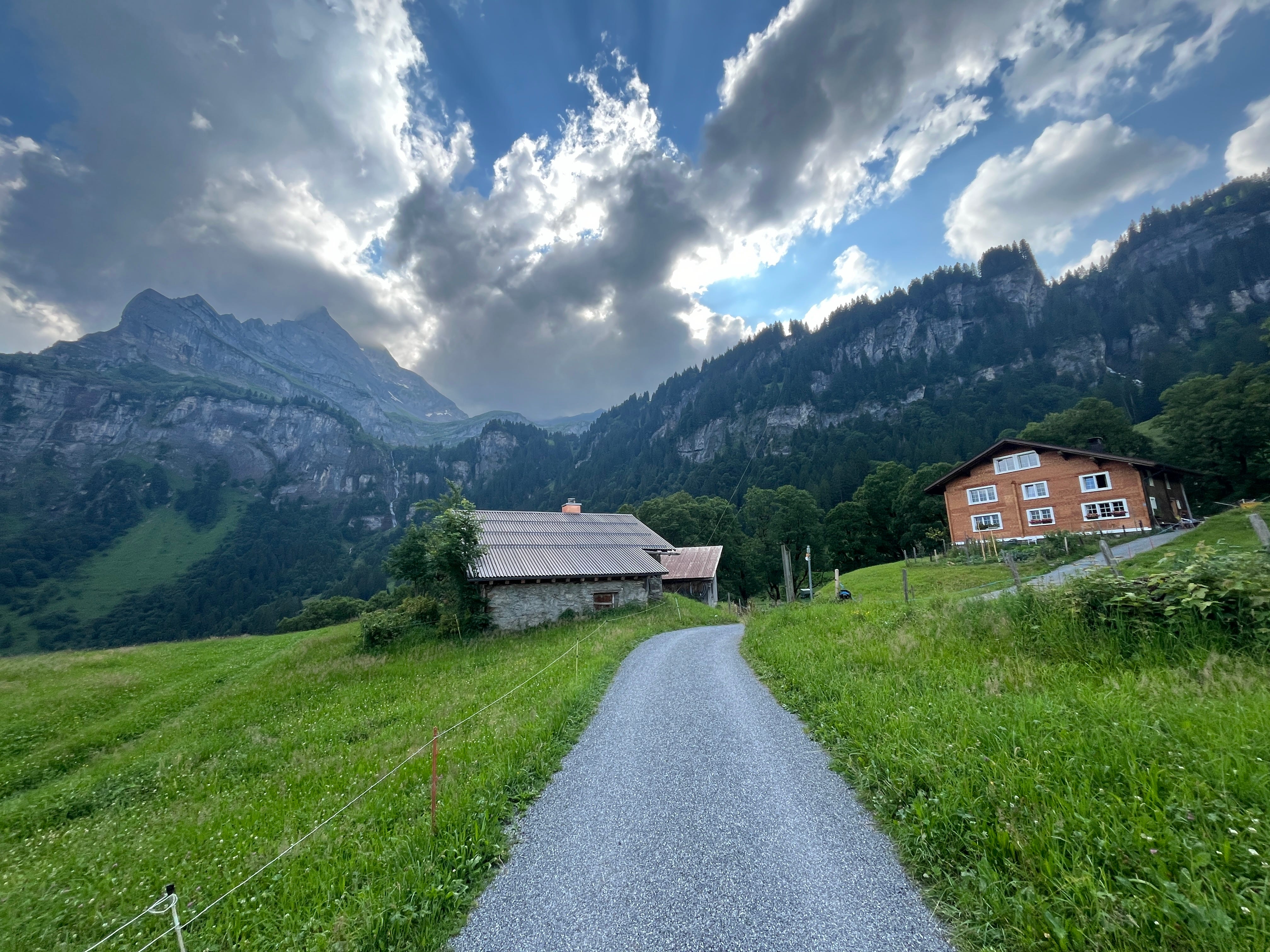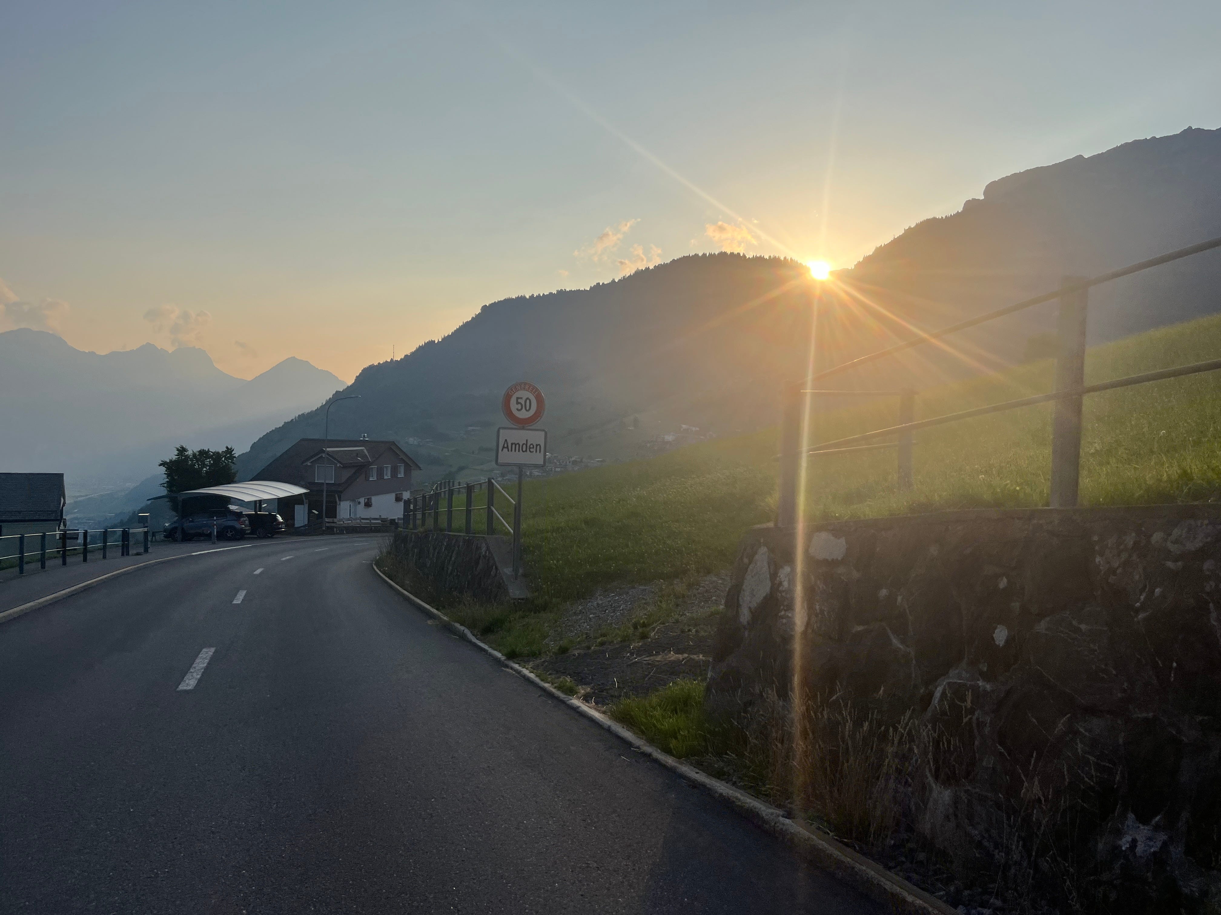 Réveil avec le soleil avant de regagner des forces du côté de Näfels. Assis sur ma chaise, je vois le trafic, intense, défiler. Il s’engouffre dans la vallée, direction le col du Klausen. Des espaces plus sauvages et isolées m’attirent dans l’immédiat.