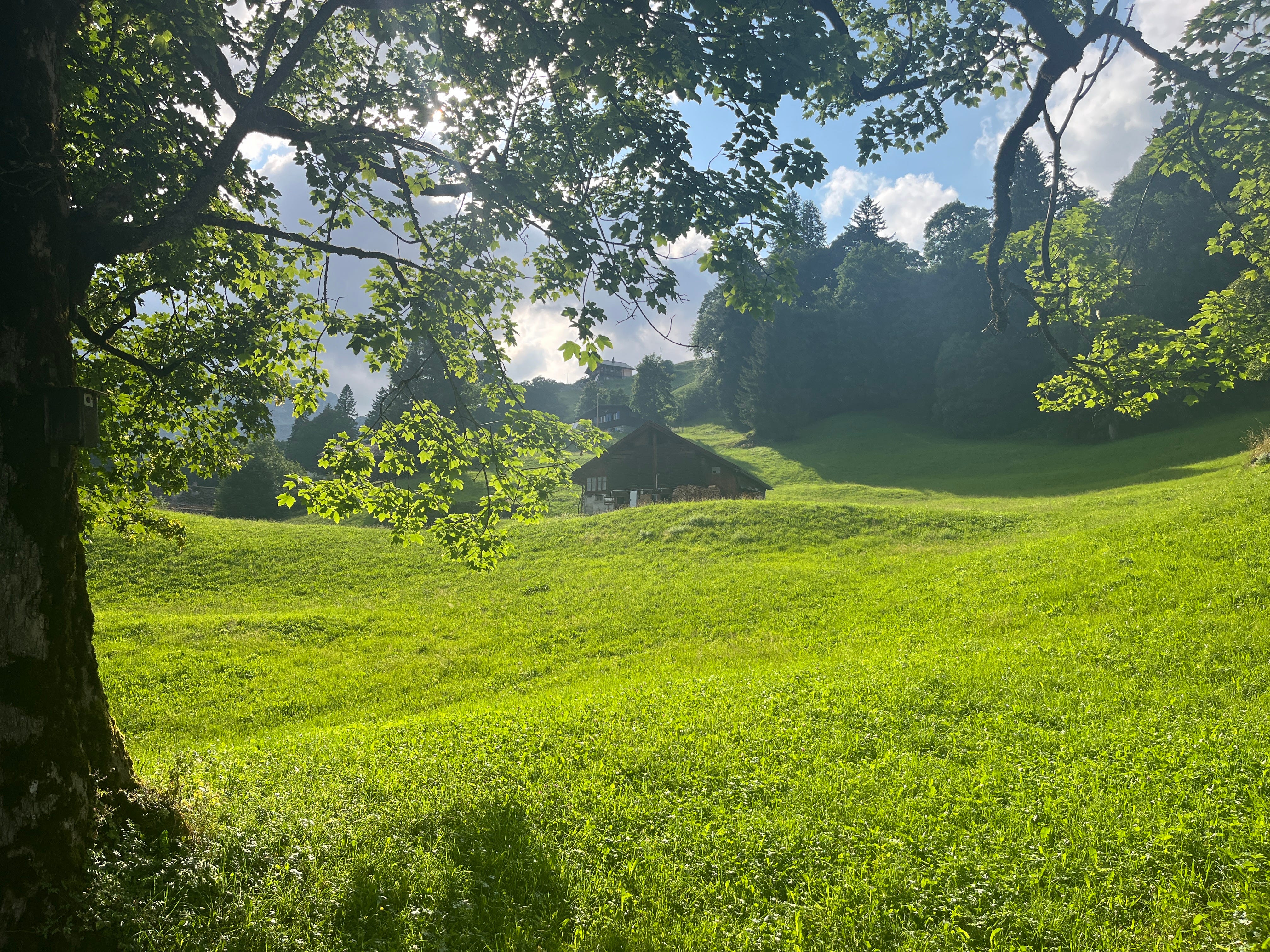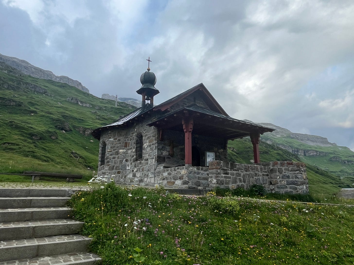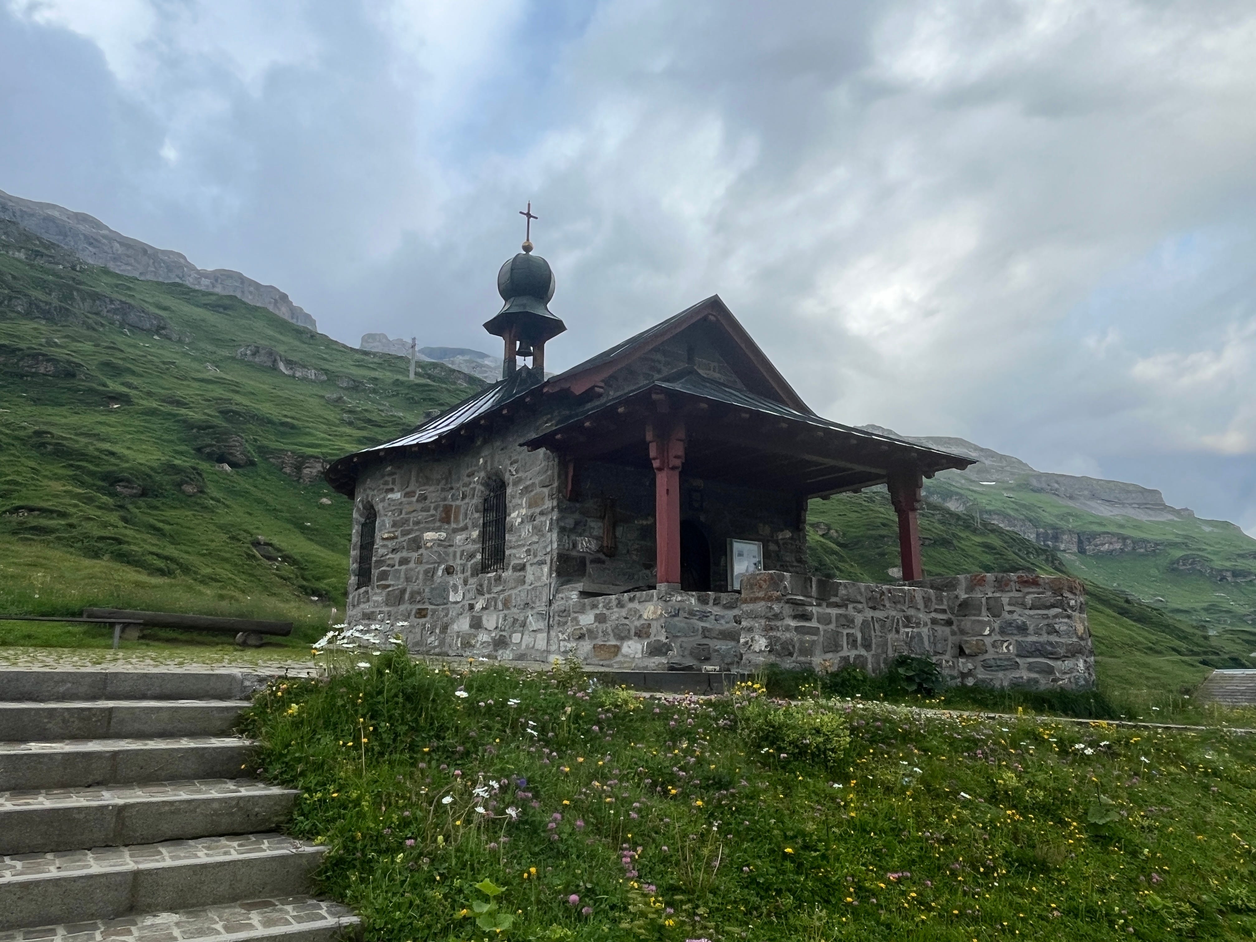 Dans le viseur, un couvert de grillade repéré dans le petit village de Melchtal et de la vallée du même nom. Une jolie montée, progressive, sous les lumières de l’imposant hôtel historique de Flüeli-Ranft dans le canton d’Obwald. J’emprunte ensuite une petite route fermée au trafic qui donne accès au Melchtal. En sous-bois, la pénombre est réelle, à peine éclairée par une succession d’abris boisés à la gloire de Marie.
