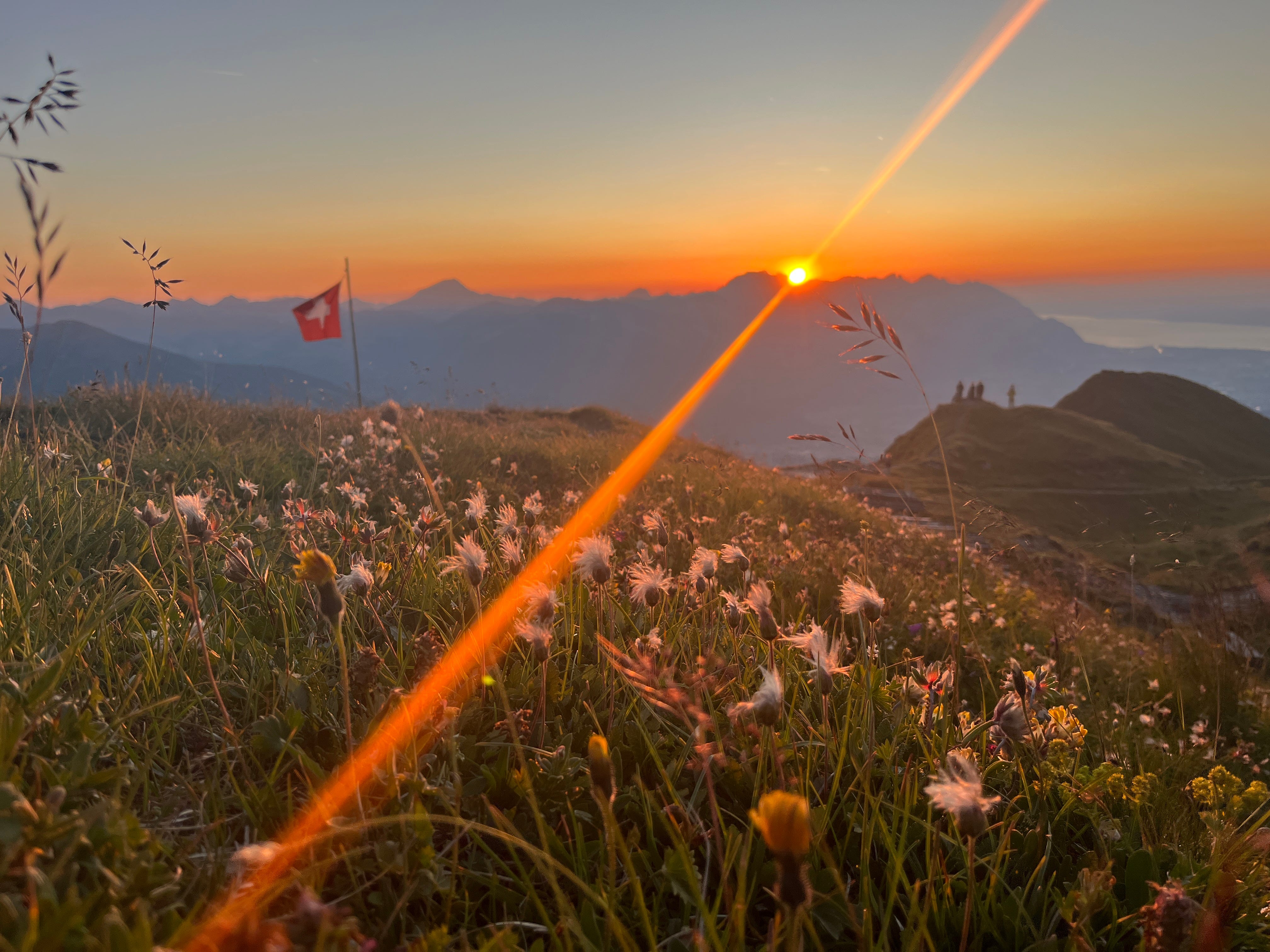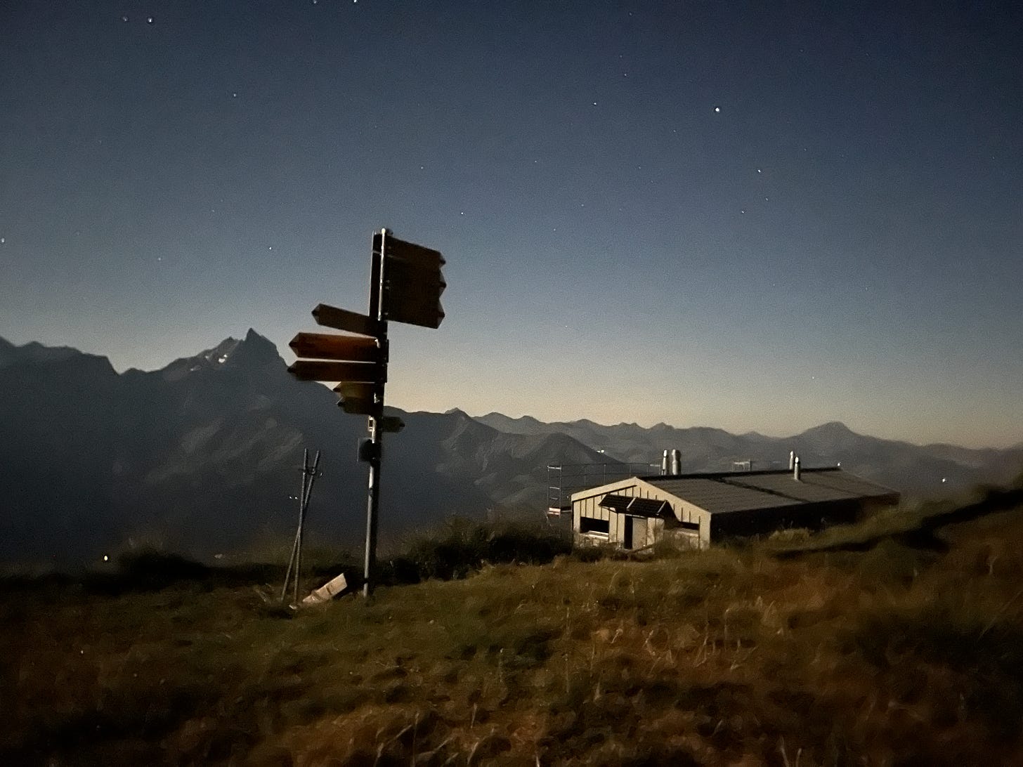 Ça y est! Nous arrivons à la cabane de la Tourche, ce lointain repère visé depuis Schaffhouse, tout au Nord du pays. Une belle soirée improvisée à partager discussions et rires avec des amis et de nouvelles connaissances. Le tout parachevé par un coucher de soleil majestueux, comme nous en offre régulièrement ce joli coin de terre. Une nuit à la belle étoile où la lune était presque pleine.