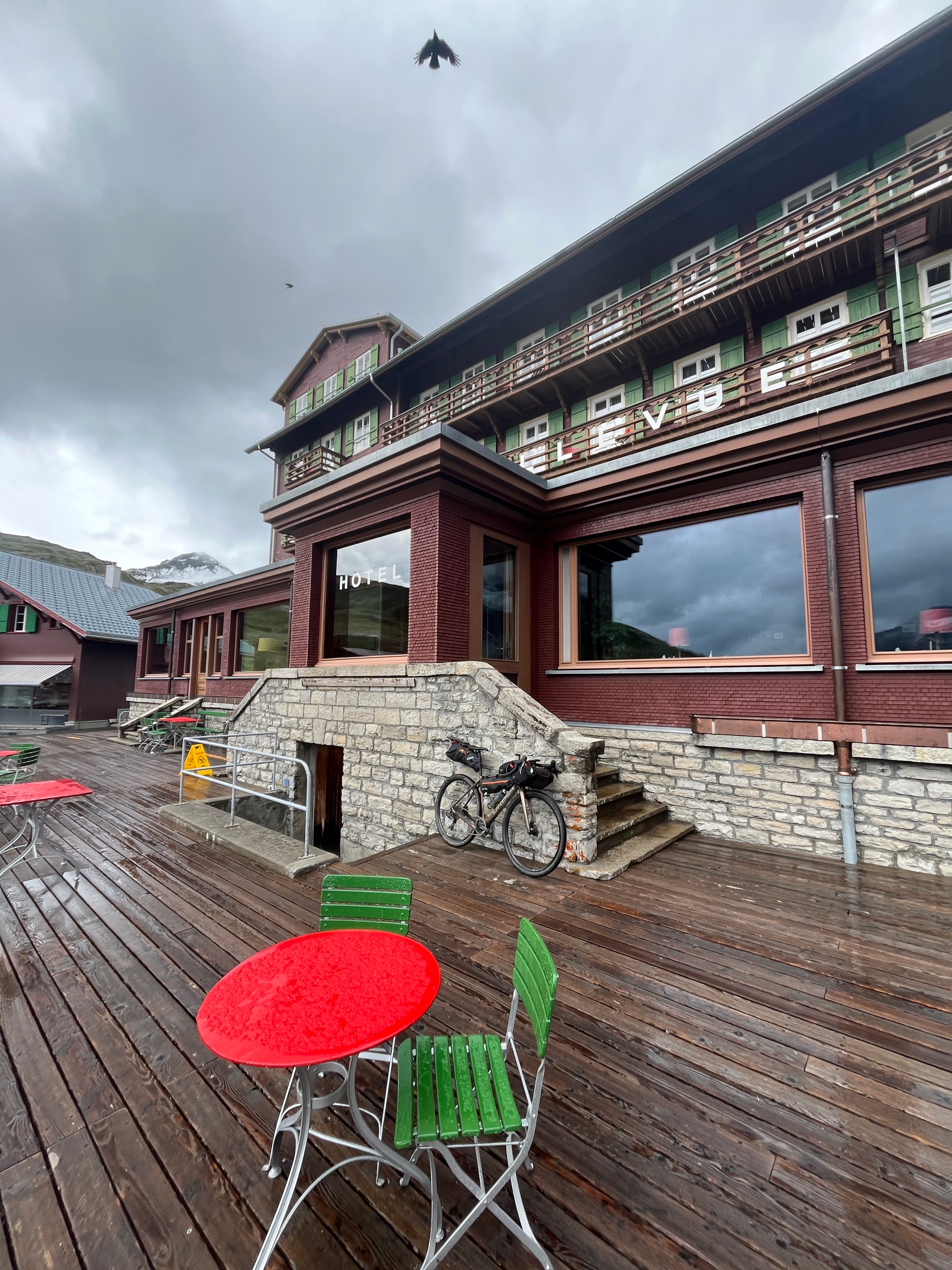 Les assauts du ciel reprenne vaillamment. Je profite du confort de l’Hôtel Post après ces 5 belles journées de vélo. Classique “Schnitzel Pommes” au menu du soir et quelques bières de trop avec 2 couples de motards anglais de passage en Suisse.