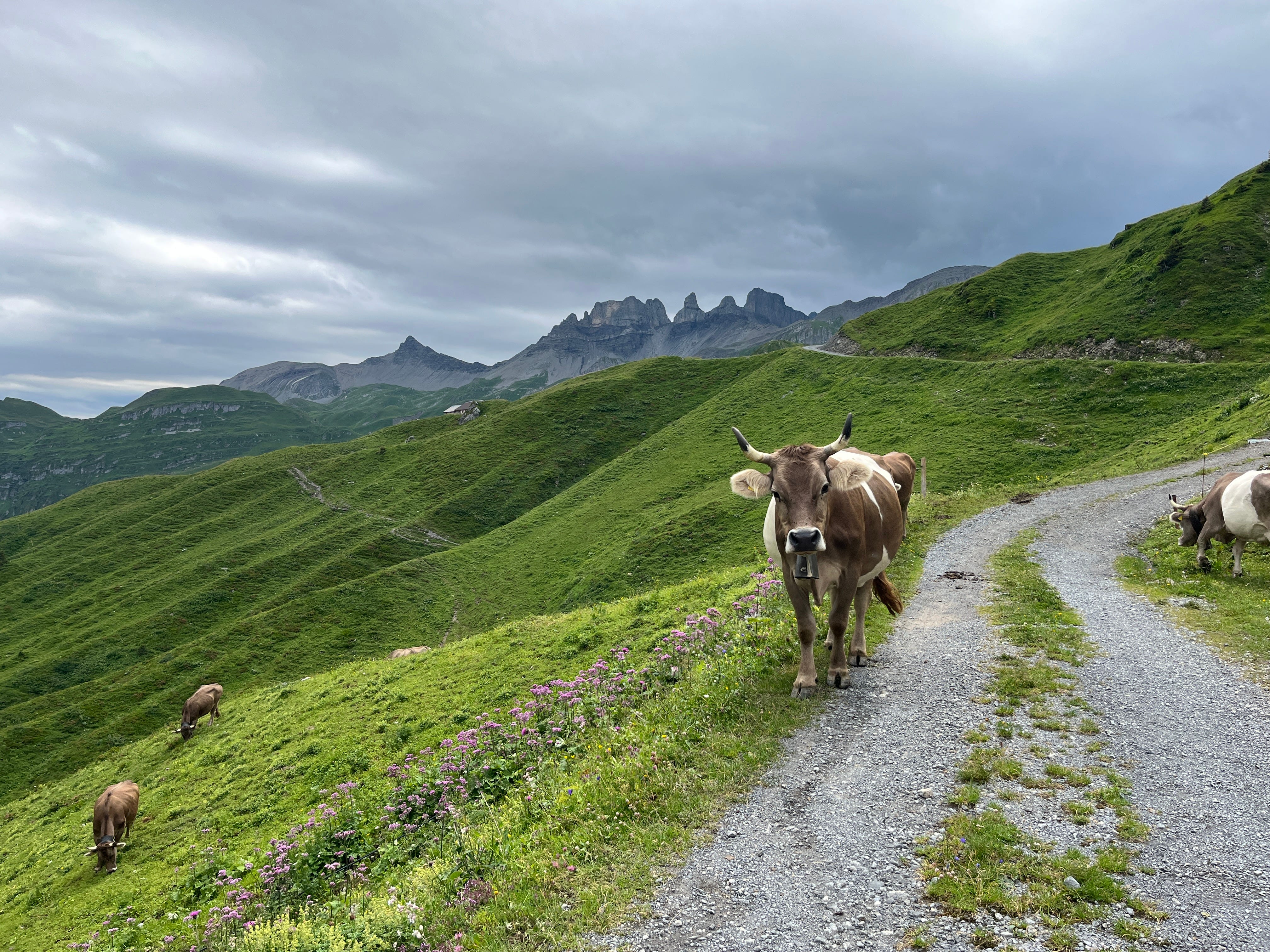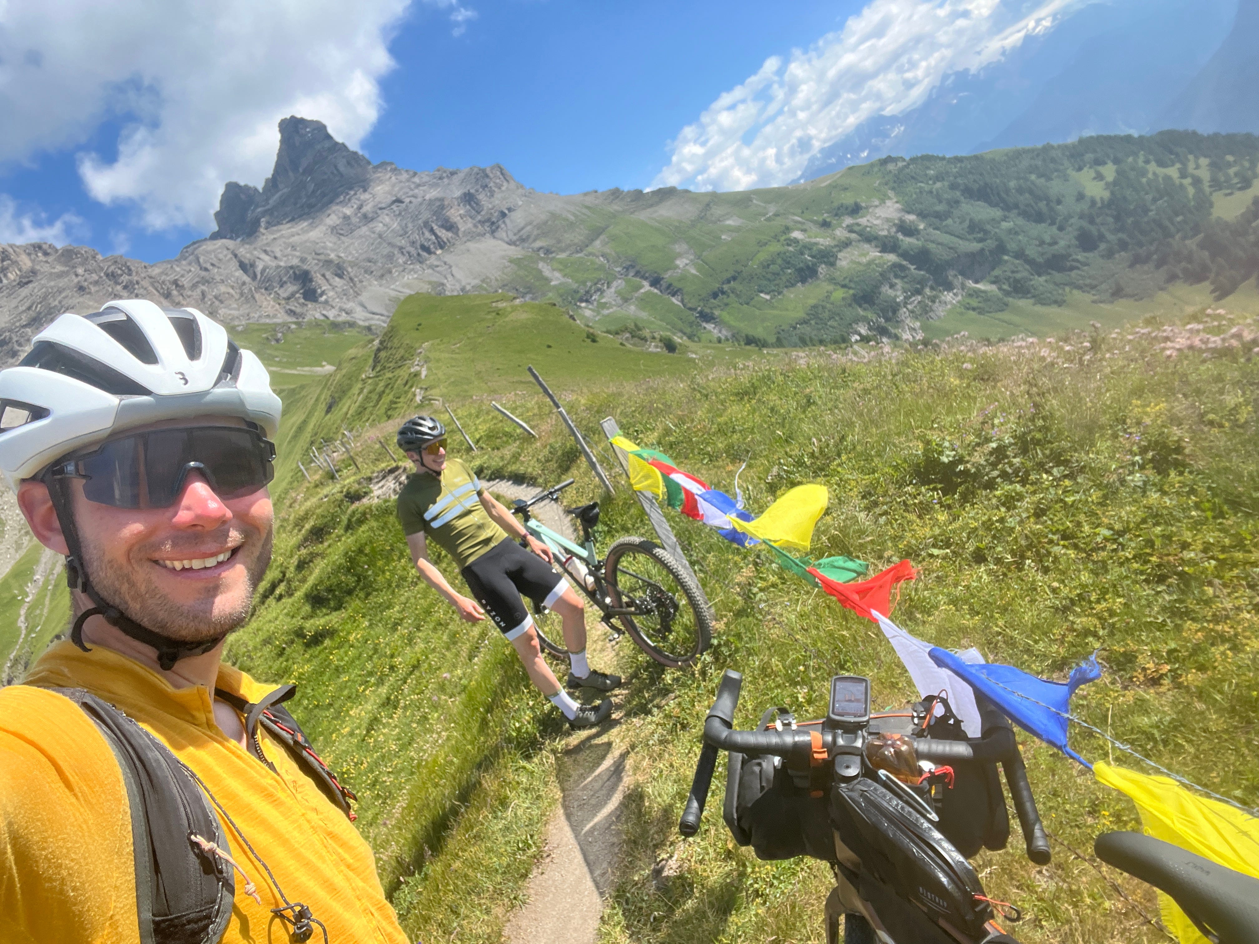 On prend encore de la hauteur jusqu’au lieu dit Oudiou qui offre une vue imprenable sur la vallée des Ormonts puis une belle descente jusqu’au Diablerets. Un ravito plus consistant consommé pour gravir ensuite le fameux col de la Croix par sa version « gravier ». Dans quelques heures, c’est resto et dodo dans le chalet de Sandrine, une amie de Gryon.