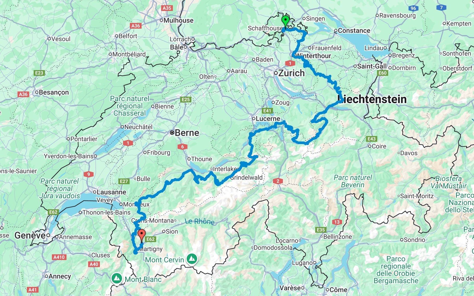Arrivé à la maison. La Suisse s’est révélée charmante mais exigeante. Des lisses pistes cyclables du Nord, aux sentiers scabreux des Préalpes. Un voyage de plaines, de montagnes, de lacs, de rivières où la Beauté éclate souvent spontanément. Une parcelle de planète qu’il vaut la peine de parcourir de détours en détours. Pour, au pire s’y perdre dans une vallée, ou au mieux, y gagner un instant d’éternité dans un joli pré.