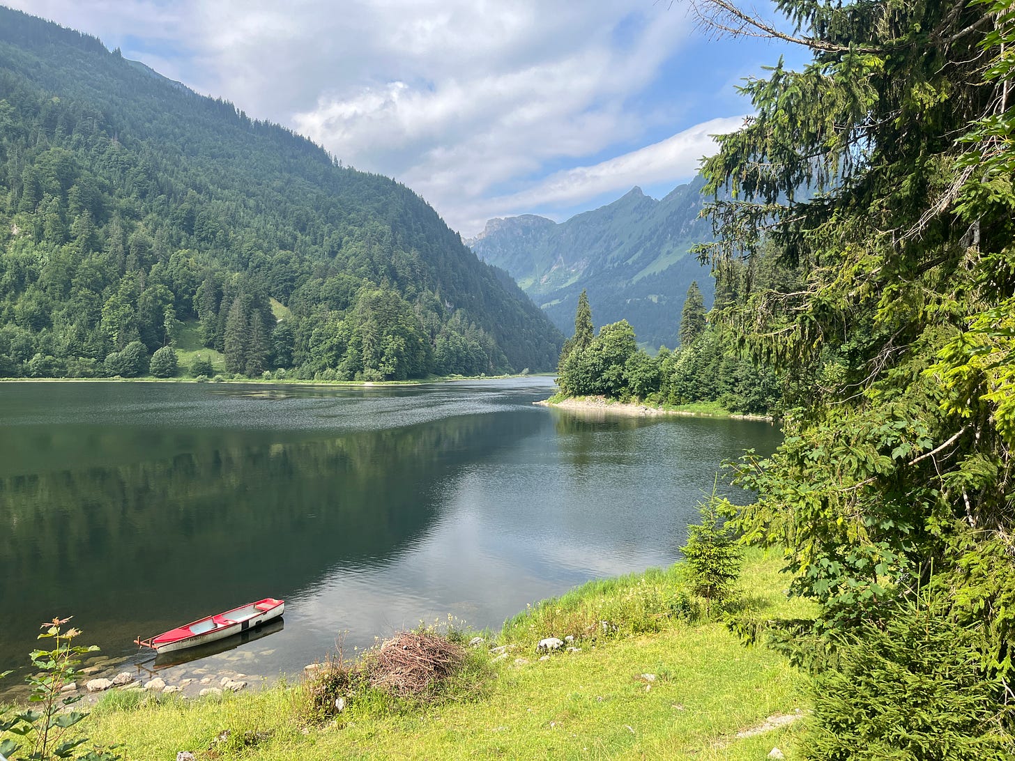 Dans un premier temps agacé, il a fallu quelques minutes pour détendre le dialogue avec mon allemand approximatif. Il se trouve que l’homme, d’un âge certain, est le gardien du Melchsee et garde-pêche en été. Tandis qu’il construit et rénove des barques naviguant sur le lac des Quatre-Cantons en hiver. Après une fin de discussion plus sereine, je reprends ma route dans un décor splendide en direction des lacs Tannensee et Engtlensee.