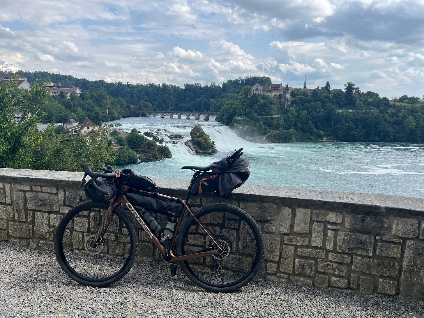 Là où le Rhin dégringole, une force se dégage. Une fois quitté les effluves et le crachin. La chaleur estivale prend le dessus. Maillot mi-ouvert, les jambes tournent comme au début d’un voyage avec de longues heures de transfert et un manque de repères.