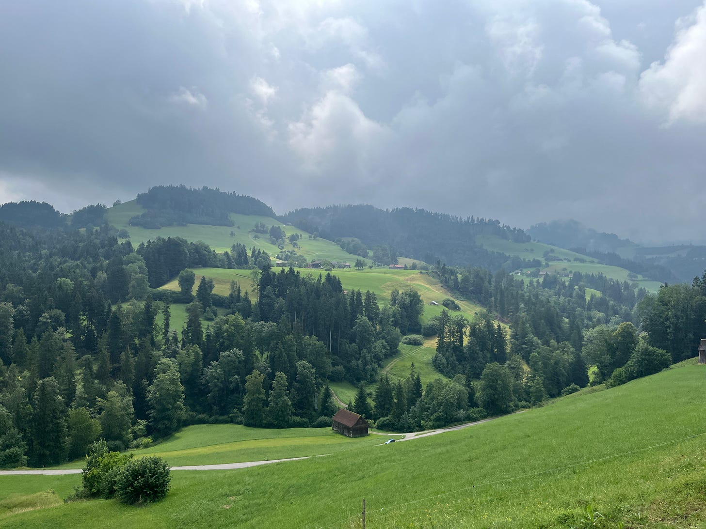 A Hemberg, ombre, glace et soda redonnent quelques forces…avant une fringale quelques dizaines de kilomètres plus loin. A peine sauvée par une pâte d’amandes, un dernier col se dresse pour échapper à l’usant terrain vallonné st-gallois. Tapissée de plaques de béton, la route affiche un pourcentage certain mais l’influx revient.